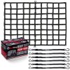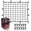 Enjoy hassle-free cargo security with BullRing’s Bungee Pickup Truck Long Bed Cargo Net! This 6ft W x 8ft L net fits most Short and Medium size beds for Ford, Dodge, Chevy, GMC, Toyota, Nissan, and other truck models. The versatile bungee webbing then stretches to a max of 12′ x 16′ to fit any taller or larger items. The tight 6″x 6″ webbing squares help to keep small items secure. If you have any smaller items, you can relocate the hooks farther toward the center of the net to get it tight. The 5mm bungee elastic is extra thick for increased strength and is made from durable UV & water-resistant nylon to handle all the abuse of being out in the elements.